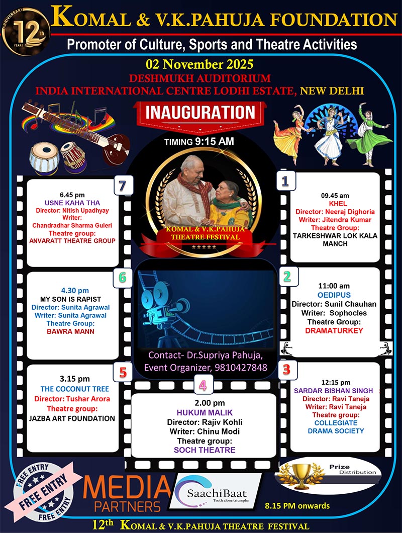12th Komal & V.K.Pahuja Theater Festival 02nd November 2025